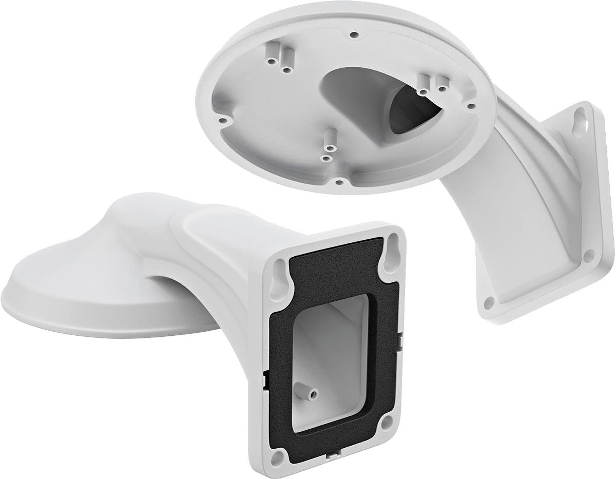 Eine Dome-Kamera kann an der Decke oder flach an der Wand montiert und in beiden Fällen gut ausgerichtet werden. Manchmal ist es jedoch besser, wenn die Kamera etwas von der Wand entfernt steht, zum Beispiel um an einem Regenrohr oder einem anderen Hindernis vorbeizuschauen. In diesem Fall bietet eine Wandhalterung eine elegante Lösung.